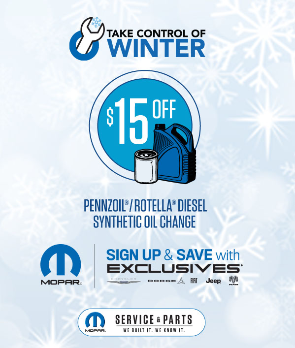 Save up to $25 full synthetic oil including Hemi when accompanied by Mopar Exclusives Coupons.