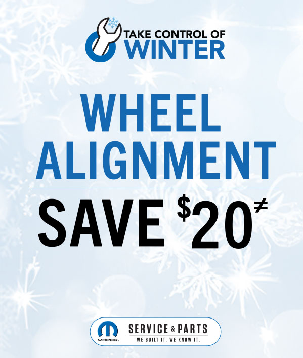 Save $20 on a wheel alignment at Laplante Chrysler Dodge Jeep Ram! Proper alignment helps extend tire life, improves handling, and boosts fuel ef...